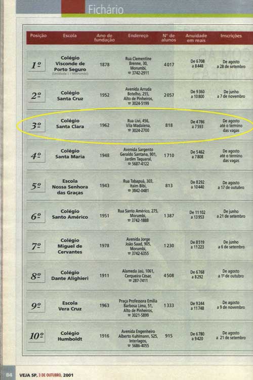 • 3/10/2001 - Colégio Santa Clara, 3º lugar em SP