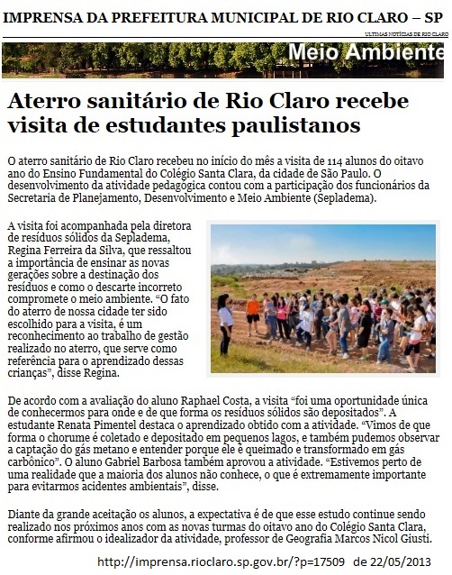 • 22/05/13 - Site da Prefeitura de Rio Claro / SP