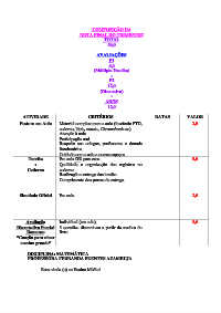 ATIVIDADE CRITÉRIOS DATAS VALOR
