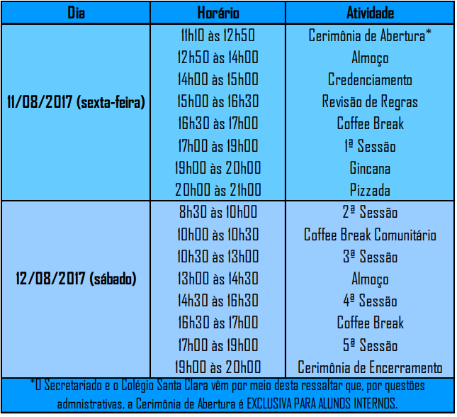 Disponível o Cronograma da lll SISC! Aguardem para mais informações, incluindo o Dress Code  e afins!